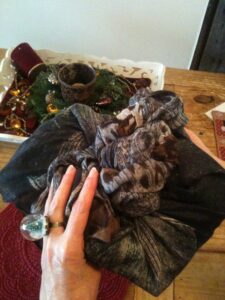 A few years ago, I started wrapping Christmas gifts with Furoshiki, and it’s become one of my favorite parts of the season. Furoshiki is a simple fabric-wrapping method with roots in Japan. What I love most is that it keeps piles of wrapping paper and Scotch tape out of the landfill. No crumpled paper, empty cardboard tubes or plastic tape strips stuck to everything. Just fabric that can be used again and again.